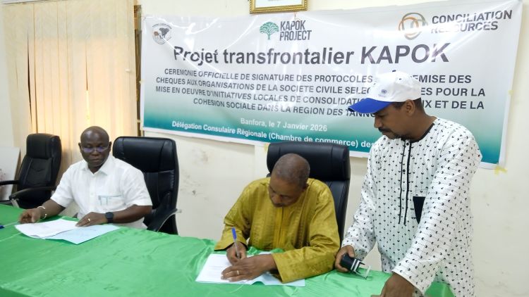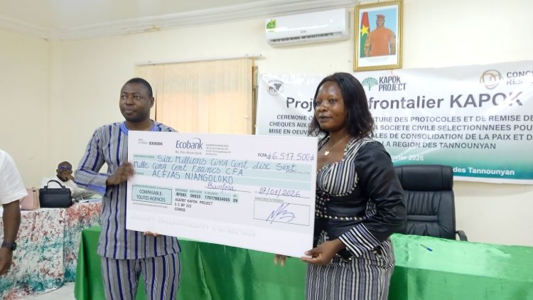 La salle de réunion de la Délégation Consulaire Régionale (DCR) de la Chambre de Commerce de Banfora a abrité ce 7 janvier 2026 la cérémonie de signature de protocoles et de remise de chèques d’avance à six organisations de la société civile bénéficiaires des subventions du projet KAPOK. Cette cérémonie qui a été présidée par le Haut-commissaire de la Comoé, Mathieu Tinguéri, consacrait également le lancement effectif de la mise en œuvre des initiatives locales de consolidation de la paix et de la cohésion sociale, un projet porté par l’AGEREF Comoé-Léraba.