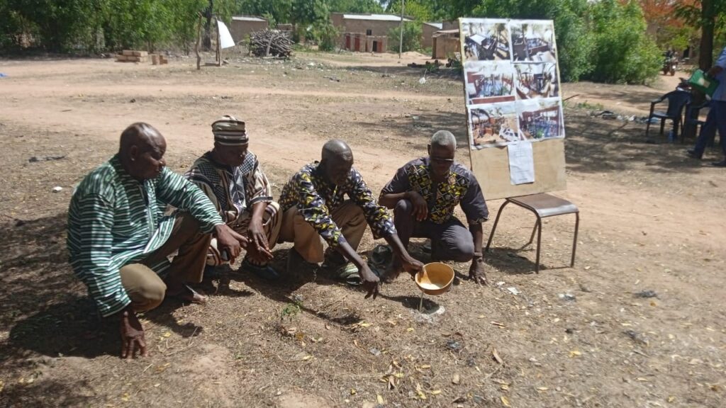 Les habitants de Yendéré, femmes, vieux, jeunes et enfants étaient fortement mobilisés ce 23 avril 2026 au domicile du chef du village. Et pour cause, chacun voulait être témoin privilégié de la pose de la première pierre de l’espace de dialogue communautaire prévu par le projet Kapok. Le site retenu se trouvant à un jet de pierre de la résidence du chef, ce beau monde s’y est rendu à pied à l’arrivée des responsables de l’AGEREF-CL dans le village situé lui-même à une cinquantaine de kilomètres de Banfora sur la RN7 qui mène en Côte d’Ivoire.