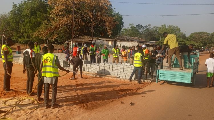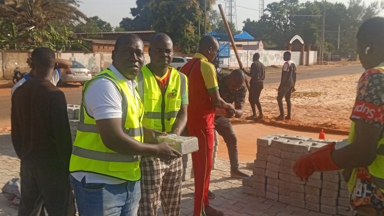 Ce 3 janvier 2026, sur appel de Issouf Sirima, ancien ministre des sports, une soixantaine de personnes se sont mobilisées à la place de la nation de Banfora. Travaillant à la chaîne, ces jeunes, vieux, femmes, hommes et enfants ont dans un premier temps décharger les tricycles qui convoyaient les pavés depuis le domaine de la police municipale jusqu’à la place de la nation. Lorsqu’il y avait suffisamment de pavés, elles ont procédé la pose sous la supervision des techniciens parmi lesquels se trouvait le Directeur des services techniques municipaux de la mairie de Banfora, Biéma Tou. L’ambiance y était bon enfant. Certains jeunes n’hésitaient pas à se taquiner comme pour montrer qu’ils étaient plus rapides les uns que les autres.