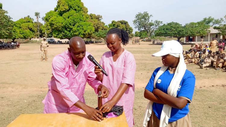 …et ici l’équipe du pool Mère-enfant du CM en démonstration du port du préservatif à l’intention des jeunes